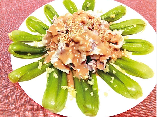 "Spinach" is really a good friend of flax sauce. I have been on the basis of "hot spinach" for a long time, with thin slices of pork on top and topped with sesame sauce. "Spinach fillet flax" is done. If you change crab sticks, boiled eggs and shrimps, Chai fish slices... This road can be derived from several dishes!